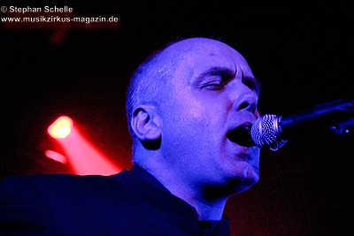 Bühnenmitte um entweder einen durch Computer verzerrten Gesang