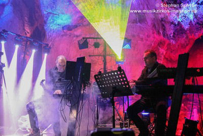 Nahtlos schloss sich dann „Out In The Cold“ an, das die Beiden zusammen in einer Session in der Rhön aufgenommen haben. Sie hatten sich vor gut drei Jahren ein Haus in der Rhön gemietet und dort ihre Instrumente aufgebaut. Nachdem sie zunächst durch den tiefen Schnee gewandert waren, hatten sie sich dann nachmittags an ihre Geräte gesetzt und losgejammt. Dabei sind einige Stücke entstanden, die sie als Sonic Transients unter dem Titel „The Rhoentapes“ bei Bandcamp veröffentlicht haben. „Out In The Cold“ war sehr atmosphärisches Stück mit sanftem Rhythmus, das zum Träumen anregte. Und nahtlos ging es dann auch gleich mit dem unveröffentlichten Track „Nightglow“ weiter, bei dem die Klänge förmlich durch die Kanzelgrotte schwebten.