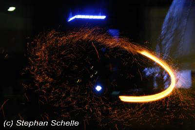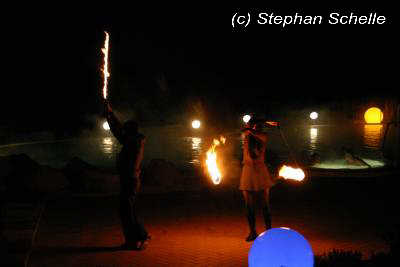 mit diversen Feuerspielereien. Da wurden brennende Keulen, Stäbe und Seile