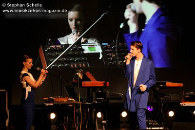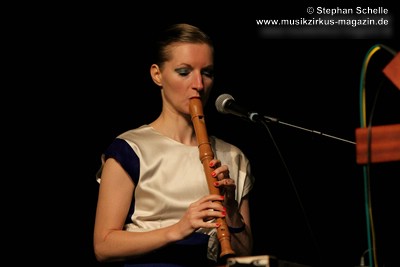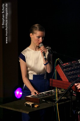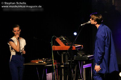 Auch wenn der erste Song des Sets „Adios“ hieß, so starteten BAR doch gleich mit einem mitreißenden, tanzbaren Stück in ihr Set. Das erste Stück des recht elektronischen Duos wurde um eine Blockflöte, die von Christina gespielt wurde ergänzt, was ganz hervorragend zu dem Electropop-Sound passte. Wie dieser erste Song schon zeigte, war die Musik von BAR hoch melodisch mit sehr eingängigen Refrains und Melodien gespickt. Während Christinas Stimme an einigen Stellen recht zaghaft wirkte, kam Lucas Gesangspart sehr geschmeidig rüber.