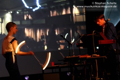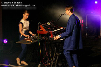 Elektronische Beats und Synthieflächen und -melodien die sehr eingängig und traumhaft waren, trafen so auf den Gesang von Christina und Lucas. Mit ihren Synthiesounds, Harmonien, Melodien, Arpeggios und Sequenzen passten sie ganz gut ins Programm des Electronic Circus.