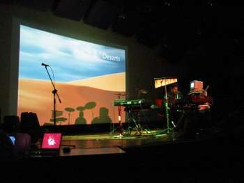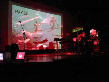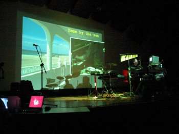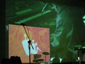 Auftritt durch eine visuelle Show. Neben Computergenerierten Fotos, die zu