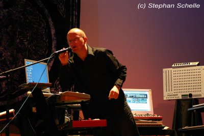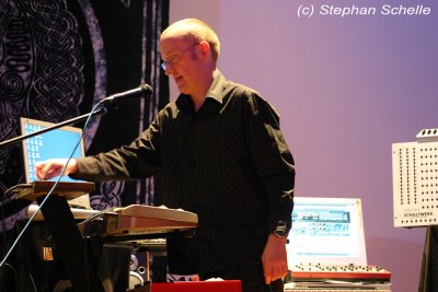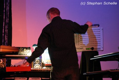 U-förmig aufgestellten Keyboardracks und seinen Computerprogrammen, dass ich