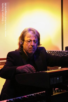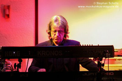 Nach einigen Momenten wurde dann die Dynamik angezogen und der Sequenzer dröhnte noch stärker als auf dem Album. Dadurch bekamen die Stücke von „Prophecy“ noch mehr Power und entwickelten eine ungeheure Kraft. Auch änderte sich der Stil nun. Ein pumpender Beat war nun die rhythmische Unterlage auf der unwiderstehliche Harmonien und Sounds von David gespielt wurden, die durch eine eingängige Melodie ergänzt wurden. Die Musik verströmte nun noch mehr Energie. David war in diesem Moment voll in seinem Element und ich habe ihn selten so entspannt hinter seinen Tasten gesehen. An diesem Stück zeigte sich dann auch ganz deutlich, dass der Auftritt in Hamm um einiges besser war, als der in Repelen im März 2017. Das lag zum einen an dem wirklich tollen, fetten Sound und zum anderen daran, dass Carys Stimme beim Hamm-Gig wesentlich besser zur Geltung kam.