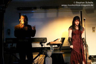 Nach dieser langen Passage wurde es dann wieder ruhiger und David spielte einige Flächen während Carys einen Text dazu intonierte. In diese Passage folgte ein Part der musikalisch und von der Atmosphäre wie aus der „Akte X“-Serie entnommen zu sein schien und mit dem Stil von David Wrights Musik eine Verbindung einging. Nach diesem Part, der wie ein sanfter Ritt auf den Wellen wirkte, leitete David das Stück dann in einen impulsiven und sehr rhythmischen Part über der wieder deutlich seine Handschrift trug. (Lange hat man von David nicht solch tolle Melodien und Rhythmen auf seinen Soloalben gehört.) Sanft legte sich zu den Soli, die David nun spielte, Carys Stimme darüber. Eine tolle Kombination! Die beiden boten einen hinreißenden Auszug aus ihrem Album.