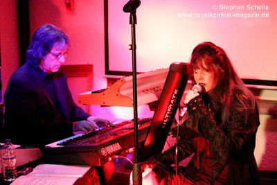 Danach kam ein Song mit Gesang, den Carys komponiert hat und bei dem David einige neue Parts hinzugefügt hat. Das Stück hieß „Call To Me“ und stammt von einer SoloCD von Carys. Das Stück begann zunächst mit sehr ruhigen, verhaltenen Keyboardsounds, während Carys einen elfenhaften, leicht verletzlich wirkenden Gesang beisteuerte. Dann setzte eine eingängige, wunderbare Melodie ein und der Song entwickelte sich zu einem mit loungigen und jazzigen Elementen versehen Stück. In dieser Fassung (ich kenne leider das Original nicht) eine tolle Nummer. Selbst eine kurze Tonunterbrechung konnte die beiden nicht aus der Fassung bringen und sie nahmen diese sehr kurze Pause mit Humor und zeigten mit welcher Lust und Hingebung sie bei dem Konzert agierten.