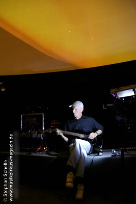 Frank begann aber das Konzert zunächst mit einem traumhaften „Intro“ bei dem eine Pianomelodie und Wasserrauschen zunächst im Vordergrund standen. Danach folgten einige sehr spacige Synthieflächen und Harmonien, die ins Stück „Cry Of The Bell“ überleiteten. Nach einiger Zeit kamen dann erstmals Klänge hervor, die eine Spur nach Mike Oldfield klangen.