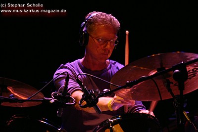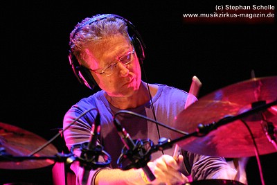 Schlagzeug und begann zunächst sehr akzentuiert die Becken zu