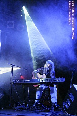 immer wieder zwischen Keyboard und Gitarren, während Christian sehr