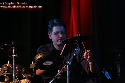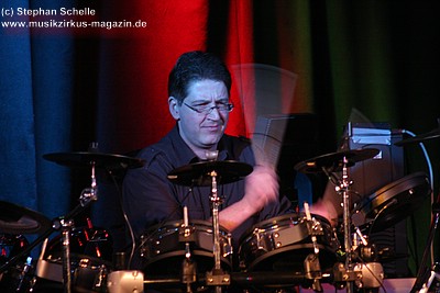 das von Rolf Schmitt druckvoll gespielte Schlagzeug und Edgar Hellwigs
