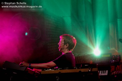 Neben eigenen Stücken huldigte Kebu auch einigen bekannten Größen aus der Instrumentalmusik. So hatte er mit „Pulsar“ ein Stück im Programm, das stark an Jean Michel Jarre angelehnt war. Zusätzlich hatte er noch Coverversionen von Vangelis‘ „Bladerunner“, Tangerine Dream‘s „Le Parc (Streethawk)“ und „Chase“ von Giorgio Moroder, einem Stück das Moroder für den Film „Midnight Express“ komponierte, in seinem Set. Und als krönenden Abschluss spielte er dann noch als Zugabe eine powervolle Version von Jan Hammer’s „Crocket’s Theme“, der Titelmelodie aus „Miami Vice“. All diesen Stücken drückte er seine ganz eigene Handschrift auf, ohne sich zu weit vom Original zu entfernen.
