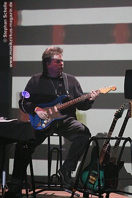 auf einem Hocker sitzend seine Gitarre spielen konnte und nicht auf der