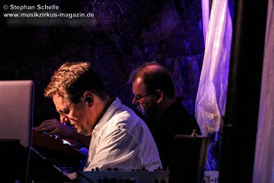 Los ging es mit dem herrlichen „(E)motion“, das durch sehr diffizile Rhythmusmuster und wunderbare Harmonien und Melodien bestach. Diesem rhythmischen Track folgte ein verträumtes „Constellations“. Hier konnte man zu der Musik einfach nur hinwegschweben. Wer die beiden nicht sehen konnte, schloss die Augen und genoss die wunderbaren, weiten Flächen in die man gebettet wurde. Zwar kam im zweiten Teil des elfminütigen Stückes ein Rhythmus auf, der aber die verträumte Stimmung nicht sprengte.