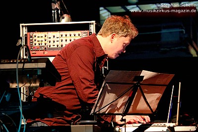 er hinter einer Burg aus Keyboards und weiteren Gerätschaften. Da kam zwar