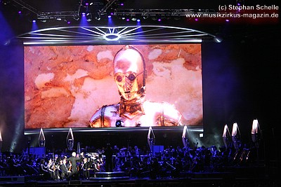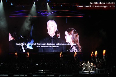 John Williams und George Lucas mit eingeblendeten Liveaufnahmen der