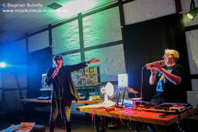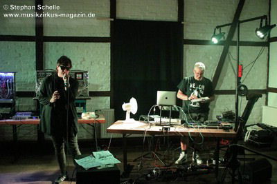 Danach folgte ein krasser Wechsel in Richtung Electro-Pop. Zusammen mit James Knights, den Steve schon seit Jahren kennt, performte er den Track „Stars“ vom Album „Across The Ice“ seines Projektes Arctic Sunrise. Bei Arctic Sunrise hat die Stücke Torsten Verlinden eingesungen, bei dem Gig übernahm James den Gesangspart. Das schloss direkt an Knights Auftritt an. Obwohl die Beiden sich beim Electronic Circus-Festival das erste Mal persönlich getroffen haben, harmonierten sie sehr gut zusammen.