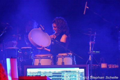 ihren Rhythmusinstrumenten wieder richtig ab. Die Frau hat eine Energie,