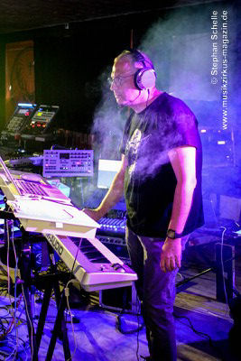 Tilo hat seine analogen Gerätschaften vor Jahren in seinem Lager abgestellt und fokussiert sich nur noch auf ein Keyboard und einen Rechner (Software). Bisher hat er eine ganze Reihe an Alben eingespielt, die über sein Bandcampprofil abgerufen und erworben werden können. Das macht es Musikern heute einfacher und vor allem reduziert es das finanzielle Risiko, was man sonst eingehen müsste, um Alben pressen zu lassen. In Borgholzhausen hatte er fünf Stücke aus verschiedenen Alben im Programm, von denen ein Stück aus vier Parts seines Albums „Under The Surface“ bestand. Die Stücke, die Tilo gespielt hat, sind am Folgetag auch schon bei Bandcamp als Album „Borgholzhausen 24-06-2023“ erschienen.