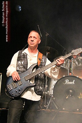 Als zweiten Act hatten die Veranstalter die aus Berlin stammende Band Aphodyl ins Rennen geschickt. Aphodyl, das sind Biene (Keyboards), Holger (Gesang, Schlagzeug), André (Gitarre) und Arno (Bass). Vor allem Arno hatte ein wenig zu kämpfen, denn ein wenige Tage zuvor erlittener Motorrad-Unfall hatte ihm ein nicht geringes Handycap beschert, das er auf der Bühne aber bestens meisterte. Zwar stand ein Schlagzeughocker auf der Bühne, doch musste er diesen nur wenig in Beschlag nehmen. Er wurde von der Stimmung in der Höhle förmlich getragen.