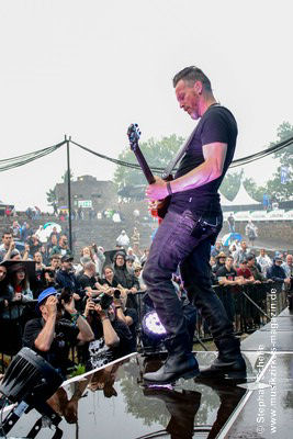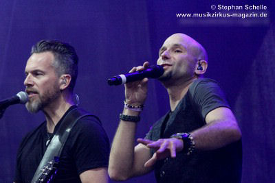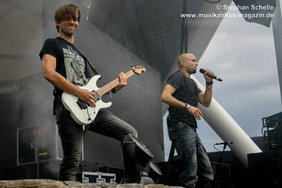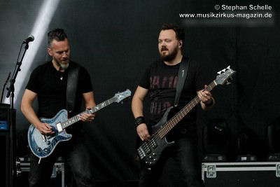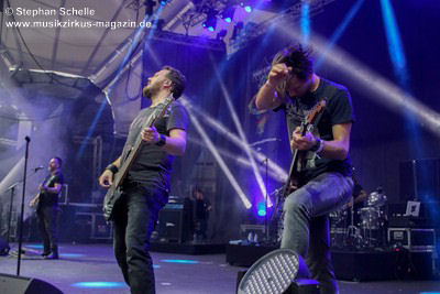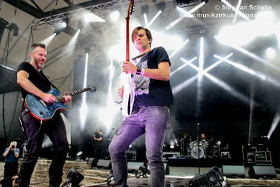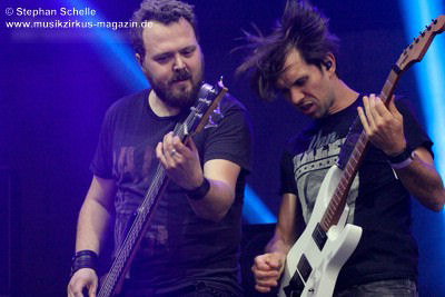 Podest an den Bühnenrand und ließen ihre beiden Gitarren in einer