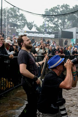 die Band, die sich darüber hinaus mit den nassen Zuschauern solidarisierte