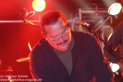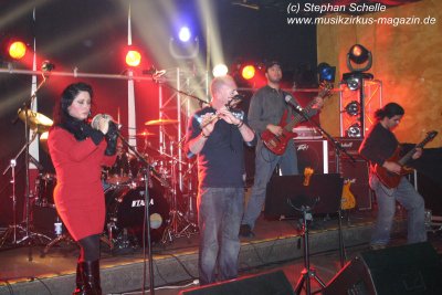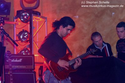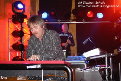 Als zweiten Act des Tages hatte man die siebenköpfige Band Cast aus Mexiko verpflichtet. Ihren Stil könnte man als eine Mischung aus Prog-/ Art-/ 70’er Jahre Symphonic- und Jamrock bezeichnen. In der Besetzung Lupita Acuna (Gesang, Perkussion), Alfonso Vidales (Keyboards), Antonio Bringas (Schlagzeug), Clausio Cordero (Gitarre), Flavio Miranda (Bass), Dino Brassea (Gesang) und Pepe Torres (Querflöte und Saxophon), zeigten sie einen Querschnitt aus ihren umfangreichen Veröffentlichungen. Die Band veröffentlicht seit 1994 Alben und kann bis heute bereits auf 20 Veröffentlichungen zurückblicken. Bei dieser Performance zeigte sich erste Begeisterung im Publikum. Für mich waren die Stücke aber etwas überfrachtet und an einigen Stellen - vor allem wenn Alfonso Vidales bei Solos in die Tasten griff - zu vertrackt angelegt. Streckenweise blitzten dann aber Passagen durch, in denen bekannte Proggrößen zu erkennen waren. Dies war vor allem in den etwas ruhigeren Momenten der Fall. Leider war der Sound für meinen Geschmack etwas zu laut, doch das sollte sich bei den nächsten Acts ändern.
