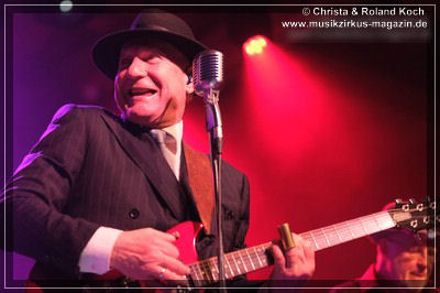 Die 2-stündige Blues-Reise hat Stopps in jedem Jahrzehnt der letzten einhundert Jahre, jede Epoche wird mit entsprechenden Kompositionen vorgestellt, gewürdigt, gefeiert, zelebriert. Norbert Egger hat sogar eine entfesselt aufspielende vierköpfige Bläser-Sektion; Kurt Gersdorf (Alt-Sax), Franz Neumeier (Bariton-Sax, musiziert auch bei Natural Blues und Berchtesgaden Blues Band), Harry Rehrl (Posaune), Markus Gorofsky (Trompete) sicher abgeschirmt hinter einem Plexi-Paravent; sowie mit dem Reichenhaller Hubert Grassl noch einen der wenigen deutschen Sousaphon-Spieler in das Magazin 3 gelockt. Mehr Authentizität geht fast nicht mehr. Doch, denn auch die britische Harmonika-Legende Steve Baker ließ es sich nicht nehmen, seinen alten Weggefährten aus der Hamburger Zeit Anfang der 80er, wieder einmal für mitreißende Duelle und Solis hier vor vollem Hause zu begleiten.