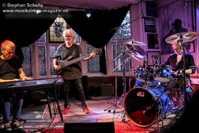 Nach einigen Geschichten holte Curt dann Wolfgang Schmid (Bass) und Chris Weller (Keyboard) auf die Bühne um mit den beiden zu improvisieren. Wie Curt sagte, ist jeder Abend anders, da die Stücke nie gleich sind. Hier zeigte sich aber welch Ausnahmekönner auf der Bühne standen. Sie agierten mit einem blinden Verständnis und boten eine sehr abwechslungsreiche Mischung aus Rock, Soul, Funk und Jazz, wobei auch mal ein The Police-artiger Rhythmus sich aus dem Sound schälte. Wolfgang Schmid spielte dabei nicht nur einen rhythmischen Bass, sondern übernahm zeitweise auch die Leadstimme bzw. die Harmonien. Während einer Improvisation zeigte Curt dann sein ganzes Können während eines längeren Schlagzeugsolos, in dem er nicht nur technisch anspruchsvoll agierte, sondern auch noch sehr harmonische Rhythmusmuster spielte. Er hat den Rhythmus im Blut.