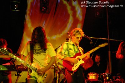 Als visuelle Unterstützung liefen im Hintergrund einige teils recht psychedelische Projektionen ab, die aber aufgrund der kleinen Bühne im Movie nur teilweise zu sehen waren. Diese Animationen, die den grafischen Stil der Alben „The Sum Of No Evil“ und „Flowerpower“ wiedergaben, passten hervorragend zur Musik.