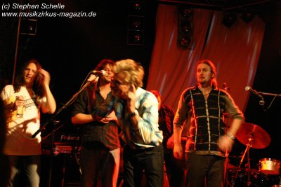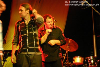 Aber die Flokis brauchen eigentlich keine visuelle Unterstützung, denn es reicht schon völlig aus ihre Musik zu hören und die Leidenschaft, die sie bei Auftritten an den Tag legen, aufzunehmen. Die einzelnen Stücke wurden in sehr schönen, abgewandelten Versionen gespielt, die reichlich Platz für Soli und Improvisationen ließ. So waren in einem Track plötzlich einige Töne der deutschen Nationalhymne auszumachen, die aber nur kurz angedeutet wurde. Dann flochten sie einige so schräg klingenden Passagen in ihre eingängigen Stücke ein, dass es schon wieder genial war.