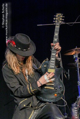 Dem schloss sich dann direkt „The Ecstasy Of Gold“ an, ein Cover des für seine Italowestern-Soundtracks bekannten Komponisten Ennio Morricone. Hier sorgte Mary mit ihrem lautmalerischen Gesang für Gänsehaut, während Cédric die Harmonien auf dem Keyboard spielte und Barth und Franck dies mit westernmäßigen Licks unterstützten Und im treibenden Abschluss schwenkte dann das Publikum die Hände hin und her.