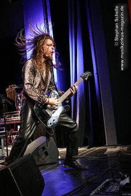 Zu einem mehrminütigen Intro, das aus kurzen Schnipseln von Songs bekannter Acts wie The Beatles, Bruce Springsteen, David Bowie, Michael Jackson, Aerosmith, Genesis und vielen anderen mehr bestand, bis ein Schnipsel von Franck Carducci auftauchte und wie ein Durchsuchen von Radiosendern klang, kam die Band dann auf die Bühne und legte sofort druckvoll mit dem Song „Slave To Rock ‚N’ Roll“ los. Franck und seine Fantastic Squad machten von der ersten Sekunde an deutlich, dass sie den Saal rocken und dabei keine Gefangenen machen wollten. Das war vom ersten Moment an atemberaubend und genau so großes Kino wie am Tag zuvor mit den Von Hertzen Brothers. Beide Bands waren für mich die Gewinner des Festivals. Und so fragte nicht nur ich mich, warum dieser kraftvolle und emotional so mitreißende Act nicht den Headliner machte.