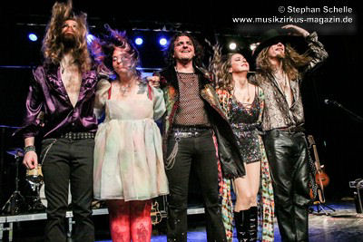 Das Quintett bestehend aus Franck Carducci (Gesang, Gitarre), Mary Reynaud (Gesang, Akustikgitarre, Theremin, Percussions), Barth Sky (Gitarre, Backgroundgesang), Cédric Selzer (Keyboards, Backgroundgesang) und Léa Fernandez (Schlagzeug) verzauberte auch die Besucher im Neuberinhaus mit ihrer grandiosen Show.