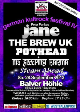 Kultrockfestival am 28.09.2013 in der Balver Höhle an den Start. Das LineUp