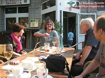 Die Saat der guten Laune war schon Tage vor dem Konzert im Grobschnitt-Forum ausgestreut worden und die zarten Knospen, in Form der Vorfreude, die am Samstag auf der Fahrt nach Hagen-Hohenlimburg schon in so manchem Gefährt (Bahn, Wohnmobil, Auto oder Motorrad) noch unter der Erdoberfläche ihr Dasein fristen musste, wurde durch das schöne sonnige Wetter beim Vorglühen im Außenbereich der „Klamotte“, einer Gaststätte in Hagen-Hohenlimburg, bei Speisen und Getränken schon einmal gedüngt. Schon dieses Treffen der Forumsmitglieder, bei dem mehr als 20 frohgelaunte Grobschnitt-Fans teilnahmen (zum Teil mit Anfahrten aus Bremen, Berlin, Nürnberg und Augsburg), geriet zu einem fröhlichen Happening.
