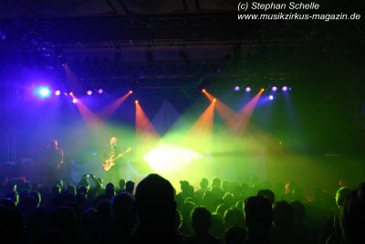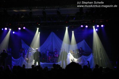Ganz vorn standen die nochmals verbesserten Showelemente. Das Licht hatte Stefan Danielak jun. noch einmal neu programmiert, was sich wirklich gelohnt hat, denn die Lichteffekte, verbunden mit dem Nebeleinsatz waren atemberaubend und hypnotisierten die Zuschauer. Musikalisch hatten sie auch etwas Hand an einigen Stellen angelegt, denn zum einen klangen die Stücke und die Soli perfekter (nicht steril sondern noch sauberer gespielt), vor allem Tattvas Einlagen waren bisher die besten der Tour, zum anderen hat die Band das Stück „Komm und tanz“ umarrangiert. Das Stück, mit dem sie den zweiten Teil der Konzerte beginnen, klang rockiger und direkter. Das lag vor allem daran, dass die Keyboardpassagen etwas entschlackt wurden und, wie ich finde, der Bass von Milla noch druckvoller und ausgeprägter rüber kam. Auch „Solar Music“ spielten sie an diesem Abend sehr rockig. Ich hatte das Gefühl, als sei vor allem der Dialog der beiden Schlagwerker Rolf Möller und Demian Hache noch druckvoller und lebendiger gewesen.