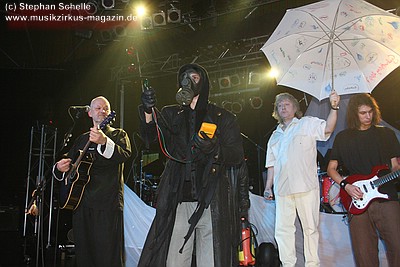 Dann kam als erster Höhepunkt des Abends (eigentlich gab es nur Höhepunkte) die Zusammenfassung von Rockpommel’s Land, die immer wieder für Begeisterung sorgt. Der Maraboo, der bei der Show nicht fehlen darf, hatte sich dieses Mal (wie schon zwei Wochen zuvor beim Gig in Gießen) sein Kind, nämlich ein Küken, mitgebracht. Eine wirklich schöne, schräge Nummer.