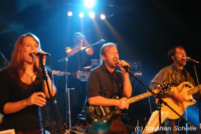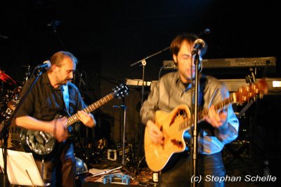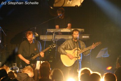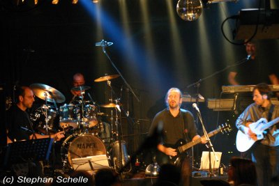 In dem über zweistündigen Programm, das sie nach mehrjähriger Bühnenabstinenz präsentierten, waren ältere Stücke, aber auch neue, bisher noch nicht aufgeführte Titel enthalten. Dabei präsentierten die sechs ausschließlich Eigenkompositionen. Zu Beginn stellte sich die Band mit einer Begrüßung des Publikums und Fotos der Bandmitglieder in Form einer Powerpointpräsentation vor, die auf dem Vorhang projiziert wurde. Dazu spielten sie einen Instrumentaltitel, der schon mal Appetit auf mehr machte. Dann fiel der Vorhang und es ging richtig ab. Ihr Mix aus Rock- und Popmusik klingt dabei absolut up to date. Mal hat man das Gefühl aktuellen Deutschpop zu hören, dann geht der Stil in die 70’er und 80’er zurück. Mitsingnummern wie „1,2,3,4,5,6,7,8“ wechselten sich mit mainstreamigen Rockpassagen ab. Beim absolut mitreißenden Stück „Drinnen“ zeigten sich beispielsweise ihre musikalischen Fähigkeiten.