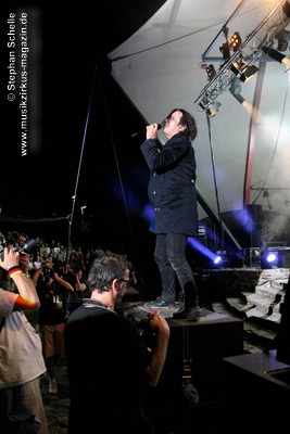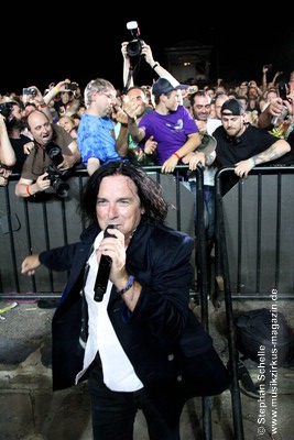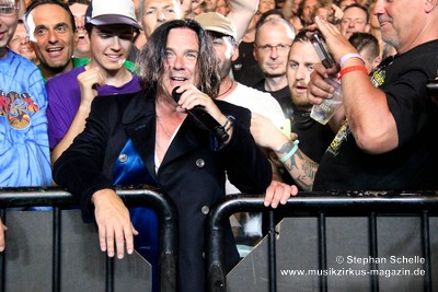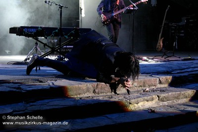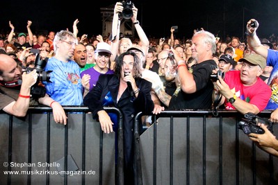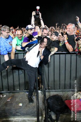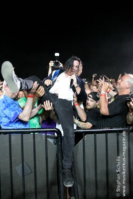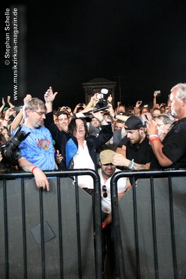 Graben vor der Bühne stieg. Auch diese Aktion wurde von begeisterten Fans
