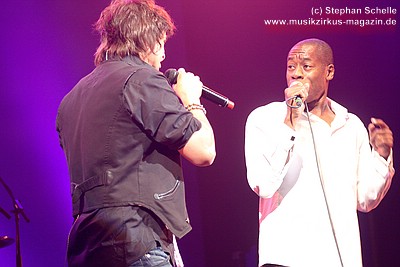 Bei „Another Cup Of Coffee” stieg zum ersten Mal, wenn auch noch etwas gebremst, die Stimmung im Saal, denn das Publikum sorgte das erste Mal mit rhythmischem Klatschen für Stimmung. Und bei den älteren Hits wurden Paul Carrack und Paul Young nicht vermisst, denn die beiden neuen hinterm Mikro waren perfekt aufeinander eingespielt und wechselten sich wie zum Beispiel in „Nobody Knows“, bei dem Roachford die Strophe und Tim den Refrain übernahm, sehr gut ab. Das klang für mich nicht nach einem Versuch die Originale zu imitieren, sondern hatte eine ganz eigene Qualität, die den Songs gut zu Gesicht stand.