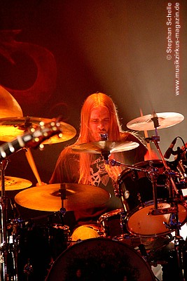 eine Akustische zur Hand, während Schlagzeuger Axenrot sich als