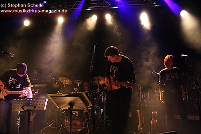 Die fünf starteten in einen gut einstündigen Set, bei dem natürlich die Stücke des Debütalbums im Vordergrund standen. Chris ging dabei nicht chronologisch vor, sondern hatte die Stücke gut gemischt, so dass der Set sehr abwechslungsreich rüberkam. Los ging es mit „Disguise“. Das Stück, das mit Floyd-mäßigen Gitarren („The Wall“-Ära) beginnt, startete in den überzeugenden Auftritt der süddeutschen Truppe.