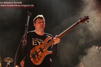Den Beginn machten Parzivals Eye, das sind in der Live-Variante RPWL-Bassist Chris Postl, der auch den Gesang übernahm, sein RPWL-Kollege Yogi Lang (Keyboards), Evi Melzer (Gesang), Uli Graner (Gitarre) und Hannes Weigend (Schlagzeug). Kenner der Band werden zwar die Namen Christina Booth und Alan Reed vermissen, die auf dem Album einige Stücke gesungen haben, es ist aber verständlich, dass diese für eine kurze Tour nicht mal eben aus England anreisen können. Das war, wie sich heruasstellte, auch gar nicht notwendig, denn Chris und Evi machten ihre Sache ebenfalls sehr gut. Vor allem Evi zeigte, wie beispielsweise beim Crosby, Stills, Nash & Young-Stück „Chicago“, welch gute Stimme sie hat.