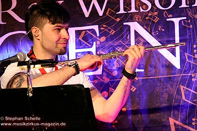 besetzt sind, trat er in Soest mit nur fünf Musikern auf. Die Besetzung des