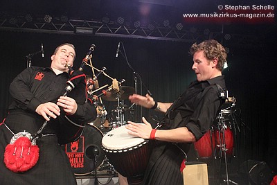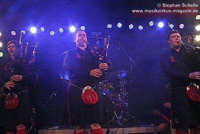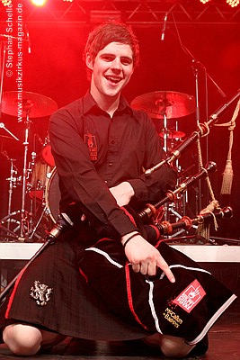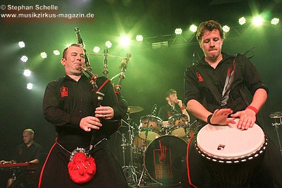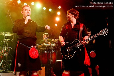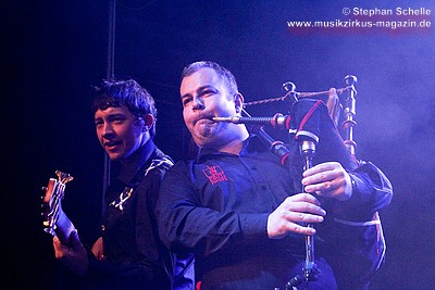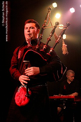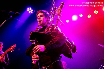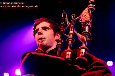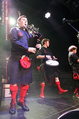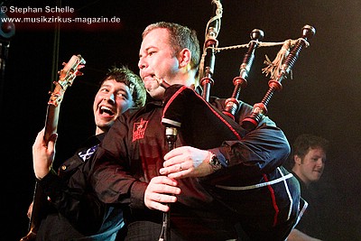 Zwischen den einzelnen Songs gab es nicht nur Ansprachen in englisch, nein die Musiker versuchten auch einige Ansagen auf deutsch zu machen. Und das machten sie mit einer gehörigen Portion Humor. Sie nahmen sich nicht ernst und das übertrug sich auch auf die gute Stimmung im Saal. Und das die Stimmung nicht nur vor der Bühne grandios war, das merkte man den Jungs auch auf der Bühne an, denn sie legten eine unglaubliche Spielfreude an den Tag. Während des Konzertes waren es vor allem die drei Dudelsackspieler, die durch eine rhythmische Performance ein tolles Bild abgaben. Da wurde dann auch schon mal unter lautem Jubel mit den Hüften geschwungen und die Kilts durch die Gegend geschleudert.