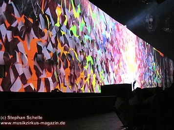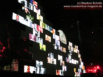 An den Seiten der mittleren weißen Mauersteine, auf denen die aufwendigsten Projektionen gezeigt wurden, waren bunte – wie angemalt wirkende – Teile der Mauer fest angebracht. Auf diesen wurden Livebilder von der Show projiziert, die allerdings durch den farbigen Untergrund – zumindest aus der Nähe - nicht so deutlich waren. Man konnte aber zumindest einen Teil der Show auch von der Seite genießen.