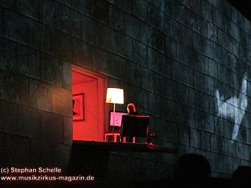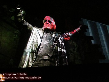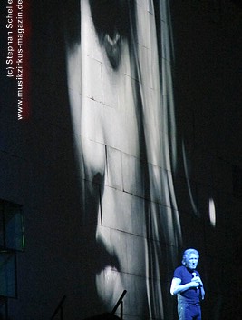 Die von Gerald Scarfe kreierten Figuren, die nicht als überdimensionale Puppen in die Show integriert waren (wie zum Beispiel die Mutter oder der Richter) – zumindest waren sie von meinem Platz aus nicht zu sehen - waren in großen Projektionen auf der Mauer zu sehen. Teilweise hatte ich sogar das Gefühl, dreidimensionale Effekte (wie etwa bei dem Teil, als die Mauer sich aufzulösen schien – und ein Dreieck sich herausdrehte - auf der Mauer bestaunen zu können.