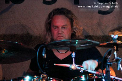 Danach stand „Feeding Utopia“, ebenfalls von „Touchstones“ an. Das Stück wurde unter großem Applaus von den Fans gefeiert und Dirk Brand bekam seine Chance, seine Qualitäten hinter der Schießbude zu beweisen. Dazu verließen alle außer ihm die Bühne und Dirk brannte im wahrsten Sinne des Wortes ein perkussives Feuerwerk an seinem Schlagzeug ab. Er liefert ein ausuferndes, druckvolles und mitreißendes Solo, das ihm - zu Recht - tosenden Applaus einbrachte.