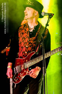 sondern glänzte auch mit tollem Solo am tragbaren Keyboard. Und auch die Gitarristen