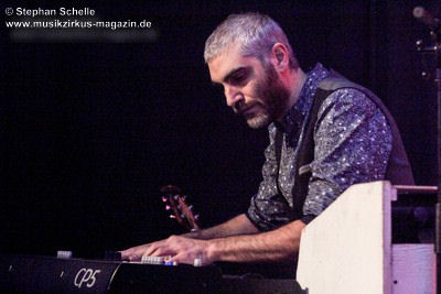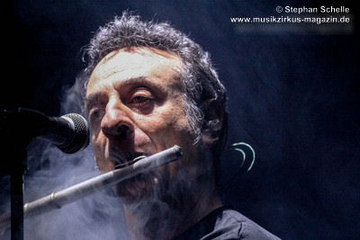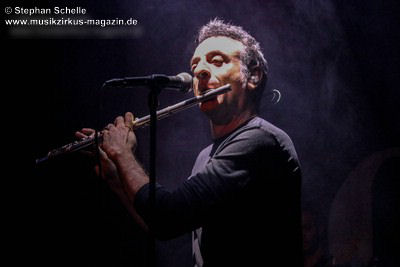 Visuell brauchten The Watch keine großen Showelemente. Lichtshow und Nebelmaschine sorgten für entsprechende Stimmungen, den Rest besorgten die Musiker mit ihrem perfekten Spiel selbst. Es war eine Freude Gitarrist Giorgio Gabriel an der E-Gitarre und der 12seitigen Akustikgitarre und Keyboarder Valerio De Vittorio auf die Finger zu schauen und zu sehen/hören wie diese unglaublichen Sounds von Genesis aufgebaut sind. Ihr Spiel zeugte von absoluter Professionalität. Und auch Simone Rossetti sorgte nicht nur mit seinem Gesang, sondern auch mit seiner Querflöte und Perkussion für einen authentischen Sound. Gitarrist und Bassist Mattia Rossetti, der oftmals zu einer doppelhalsigen Gitarre griff, unterstützte perfekt den Gesamtsound und der Jüngste im Bunde, Marco Fabbri, ließ die Felle und Becken erklingen, wie es seinerzeit Phil Collins nicht besser drauf hatte. Er sorgte mit einem mal druckvollen, dann wieder akzentuiert gespielten Rhythmus für den richtigen Groove.